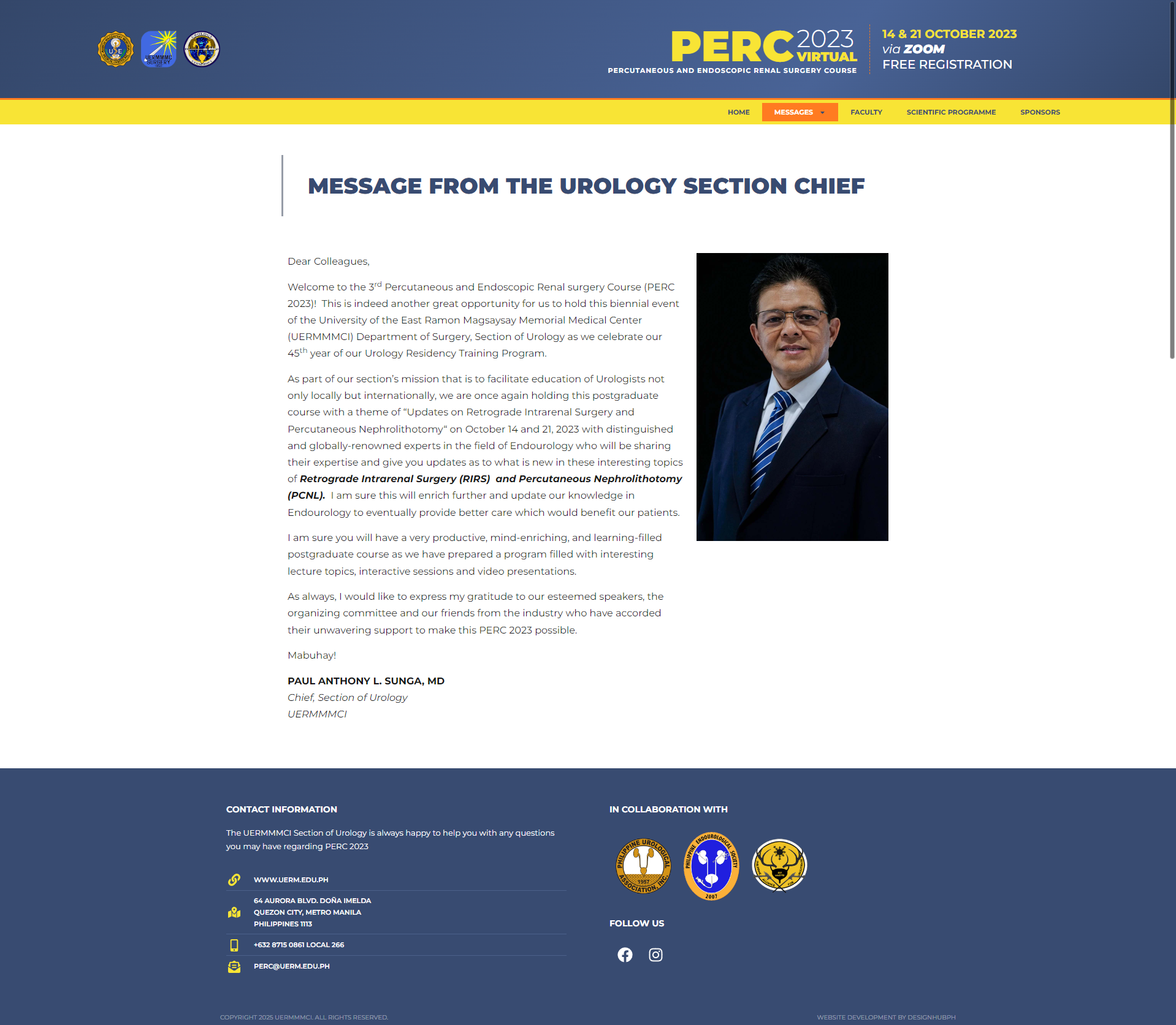 Virtual event website made for the biennial Percutaneous and Endoscopic Renal surgery Course of the University of the East Ramon Magsaysay Memorial Medical Center, Inc. Department of Surgery – Section of Urology.